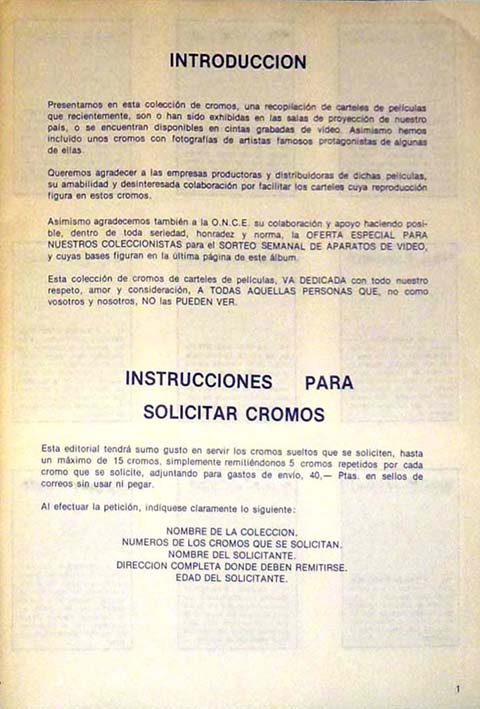 Album cromos películas distribuidas en video